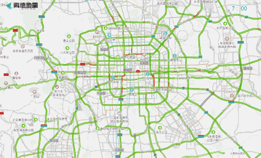 周末期间,去往香山、玉渊潭、景山、北海、圆明园、天坛、中山公园、动物园、龙潭湖、朝阳公园等城区公园客流量增加。香泉环岛、西直门外大街、西三环等公园周边道路车流集中,交通压力较为突出。